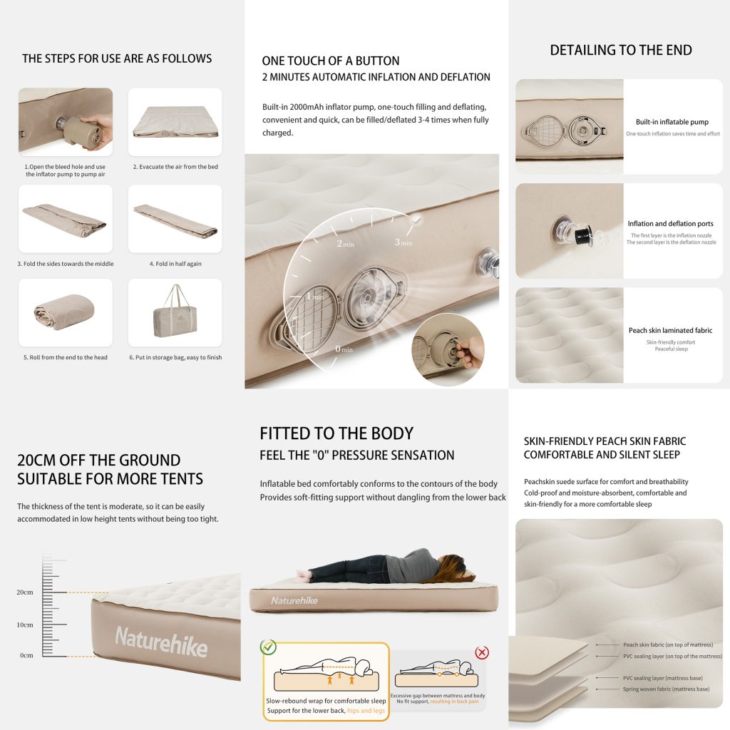 با تشک بادی 2 نفره نیچرهایک ، تجربه خوابی راحت و سبک را در سفرهایتان داشته باشید. با طراحی منحصر به فرد و کیفیت بالا، این تشک بادی ایدهآل برای کمپینگ و طبیعتگردی است. نصب آسان، وزن سبک و مقاومت بالا از ویژگیهای برتر آن بوده و آسایش شما را در هر مکانی تضمین میکند.