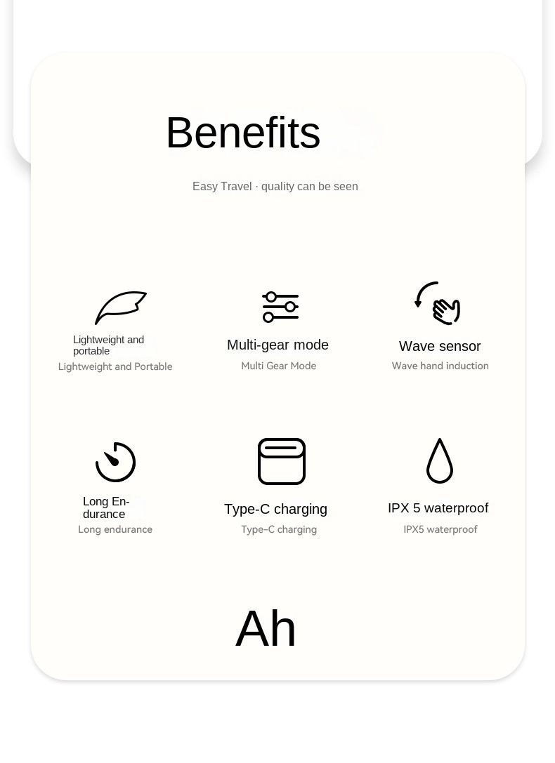 این هدلایت برای سختترین شرایط ساخته شده است. استاندارد ضدآب IPX5 آن را در برابر پاشش آب، باران و رطوبت مقاوم میسازد. جنس بدنه از ترکیب ABS + PC پلاستیک و جنس لنز از پلیکربنات شفاف (PC)، باعث افزایش مقاومت در برابر ضربه و سقوط میشود. ابعاد محصول 6.2 × 5 × 3.3 سانتیمتر بسیار جمعوجور بوده و بند کشی الاستیک 2.5 سانتیمتری آن نیز بهخوبی روی سر فیت میشود