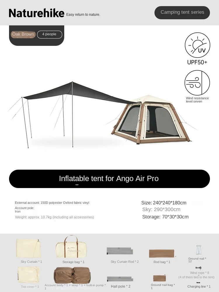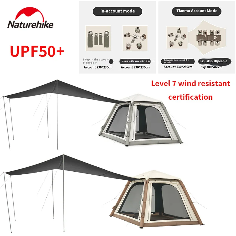 چادر بادی چهار نفره با سایبان نیچرهایک four-person tent with canopy