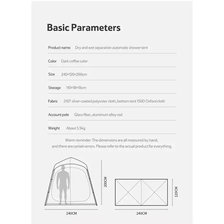 - ابعاد در حالت باز : 200 × 120 × 240 سانتیمتر