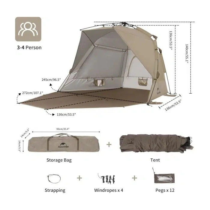 چادر ساحلی 2-3 نفره اتوماتیک نیچرهایک