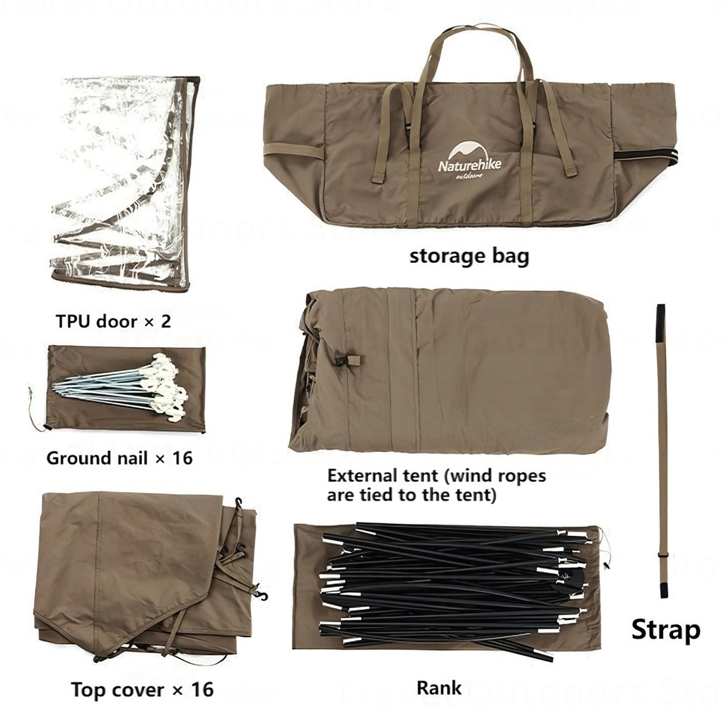 | کاربردها | چادر اصلی، سایبان، پناهگاه در باد و باران، یا محل استراحت گروهی |